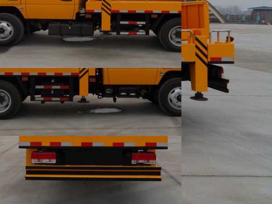 | 整車(chē)說(shuō)明: | 前伸1000mm,后伸200mm;駕駛室準(zhǔn)乘人數(shù)為2+3人時(shí)整備質(zhì)量為6975kg;側(cè)防護(hù)及后防護(hù)裝置的材料:冷彎槽鋼Q235B;連接方式:側(cè)防護(hù)螺栓連接;后防護(hù)焊接,截面尺寸(寬×高)mm:50×180,離地高度480mm。隨底盤(pán)選裝駕駛室。 | ||