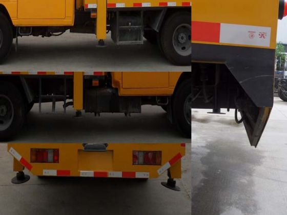 | 整車說明: | 專用裝置前伸1070mm。側(cè)防護采用Q235A冷彎型鋼,螺栓連接;后防護與專用裝置連為一體,下邊緣離地高500mm。 | ||
