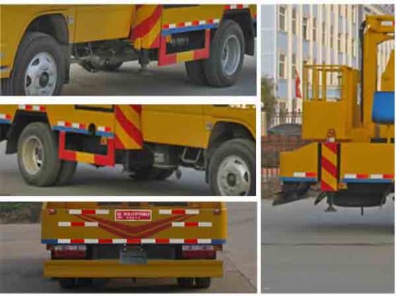 | 整車說明: | 該車吊臂前伸為1100mm,作業(yè)高度為14米和16米。上裝選裝二節(jié)工作臂時,作業(yè)高度為12米。隨底盤選裝新造型的前圍下面罩。駕駛室準乘人數(shù)(人): 2+3,3+3。防護材料:Q235A碳鋼,連接方式:左右側(cè)面及后下部防護均采用焊接連接,后下部防護斷面尺寸(mm):180×50,后下部防護離地高度(mm):440。 | ||