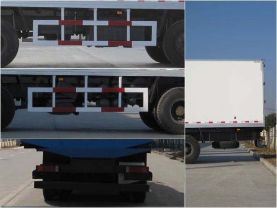| 整車說明: | 該車車廂頂部封閉.不可開啟.側(cè)面可選裝無側(cè)開門、雙開門、一對(duì)對(duì)開門和兩對(duì)對(duì)開門結(jié)構(gòu).隨底盤選裝普通駕駛室,高頂駕駛室頂部氣喇叭為選裝件.選裝燈具完全一樣僅局部外觀不同的駕駛室.隨底盤選裝低頂駕駛室時(shí)制冷機(jī)組前置.選裝制冷量近似的其他型號(hào)制冷機(jī)組.后懸/軸距/離去角對(duì)應(yīng)關(guān)系如下1:2980/1850+4350+1350(1950+4250+1350)/9.9;2:2900/1850+4350+1430(1950+4250+1430)/10.17;3:2730/1850+4600+1350(1950+4500+1350)/10.78;4:2650/1850+4600+1430(1950+4500+1430)/11.1;5:2780/1950+4500+1300/10.59;6:3030/1950+4250+1300/9.74.側(cè)面及后下部防護(hù)裝置所用材料材質(zhì)為Q235A,側(cè)防護(hù)及后下部防護(hù)為螺栓連接方式,斷面尺寸為120mm×60mm,離地高度為460mm.該車僅選用ISLe315 40和ISC8.3-270E40A型號(hào)發(fā)動(dòng)機(jī),發(fā)動(dòng)機(jī)凈功率分別為224.5KW和191KW.油耗對(duì)應(yīng)值分別為41L/100km和42L/100km.該車裝備行駛記錄儀.ABS生產(chǎn)廠家及型號(hào):東風(fēng)電子科技股份有限公司制動(dòng)系統(tǒng)公司,3631010-C2000. | ||