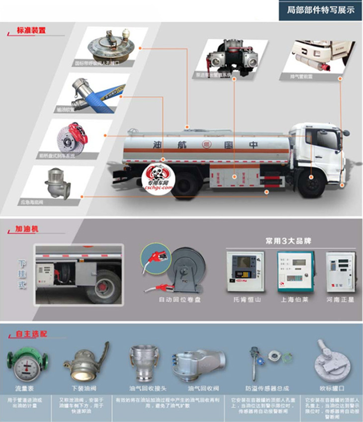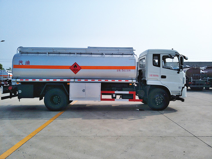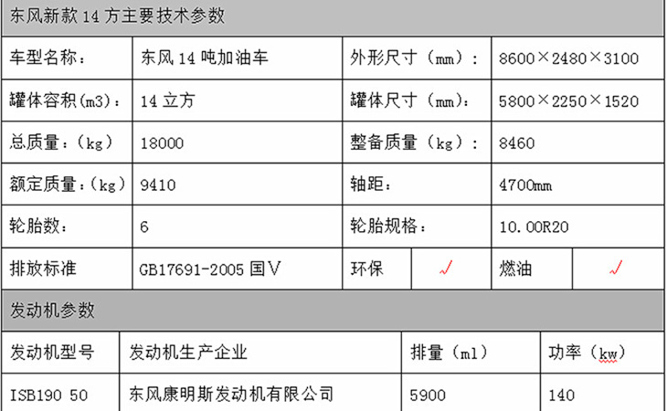 東風(fēng)D913駕駛室,康明斯190馬力國五發(fā)動(dòng)機(jī)東風(fēng),陜齒小八檔變速箱,方向助力,斷氣剎,前盤制動(dòng),限速裝置,排氣制動(dòng),ABS防抱死系統(tǒng),10.00R20原廠鋼絲胎,6噸前橋,9噸后橋。罐體有效容積14立方,(加油機(jī)側(cè)掛),標(biāo)配帶歐標(biāo)罐口、緊急切斷裝置(海底閥),罐體采用武漢鋼鐵公司Q235優(yōu)質(zhì)國標(biāo)5mm碳鋼板材一次卷壓成型,電腦自動(dòng)焊,完全做到無縫成型.罐體內(nèi)均設(shè)有多道防波隔板,采用高壓氣體試漏檢測,試水檢測,探傷檢測,使罐體具有強(qiáng)度高,重心穩(wěn),車輛運(yùn)載安全平穩(wěn)等特點(diǎn).整個(gè)罐體分單倉或多倉,倉內(nèi)可分室,中間隔板下端有通孔,每倉中間焊有分倉加強(qiáng)波隔板,以減輕汽車行駛時(shí)罐體內(nèi)油料的沖擊和提高罐體的剛度.罐體外表涂防銹漆及裝飾漆.罐體及各保險(xiǎn)杠貼紅白色視覺反光條,罐體兩側(cè)貼“爆”字,自動(dòng)呼吸閥裝置。