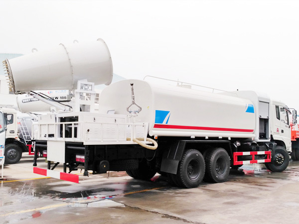 功能配置:帶前部沖洗路面噴灑裝置、后部扇形降塵噴灑裝置,兩側(cè)面噴灑裝置,帶后部工作平臺(tái)、平臺(tái)上安裝綠化灑水炮(炮噴射形狀可調(diào)),可調(diào)直沖狀、大雨、中雨、毛毛雨,可連續(xù)調(diào)節(jié),最大射程可達(dá)28米,垂直吸程6.5米,揚(yáng)程14米,另加裝高效率車載式風(fēng)送噴霧機(jī),噴藥炮霧化效果好,可遠(yuǎn)程噴霧,水平射程達(dá)25米。帶消防接口、自流閥,可自吸自排。